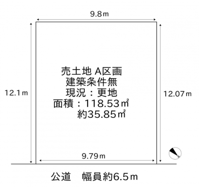 - 北東側 公道6.5m 間口約9.7m