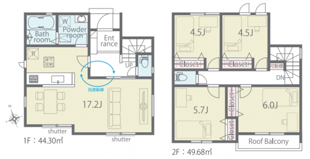 - 延床面積にルーフバルコニーの一部約1.65平米含む
