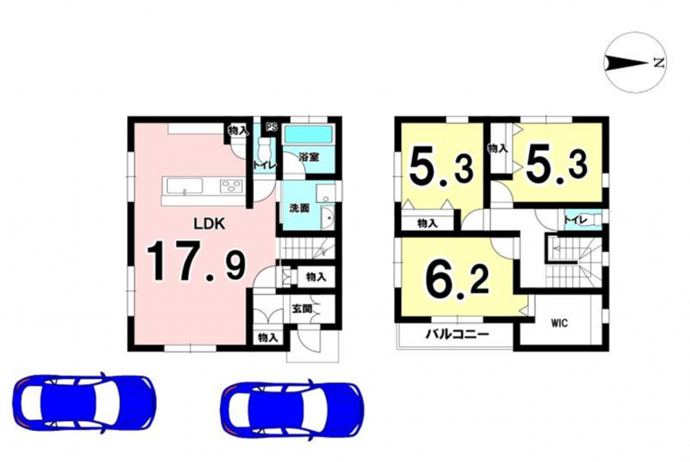 - システムキッチン、洗浄便座、ウォークインクローゼット、駐車場2台分、トイレ2箇所