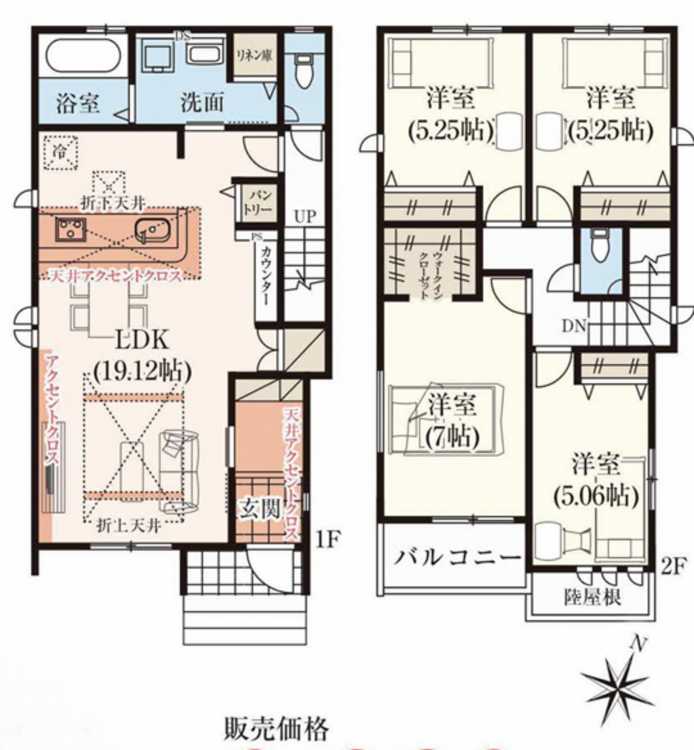 - システムキッチン、カウンターキッチン、シャンプードレッサー、洗浄便座、浴室乾燥機、複層ガラス、ウォークインクローゼット、駐車場2台分、トイレ2箇所、パントリー、ワイドバルコニー