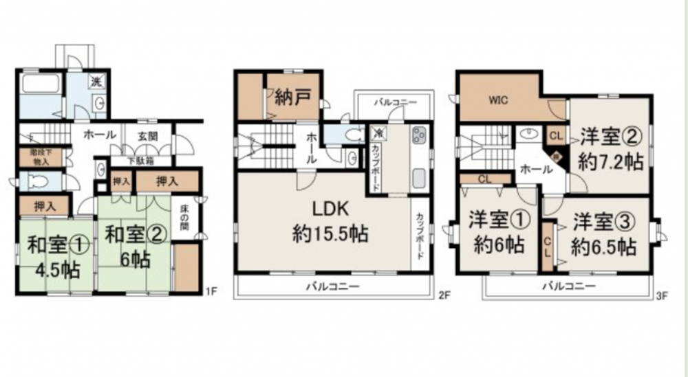 積水ハウス施工、鉄骨造3階建て5LDKのお家!WIC・納戸・階段下物入など、収納スペースが充実! 駐車スペース2台分!