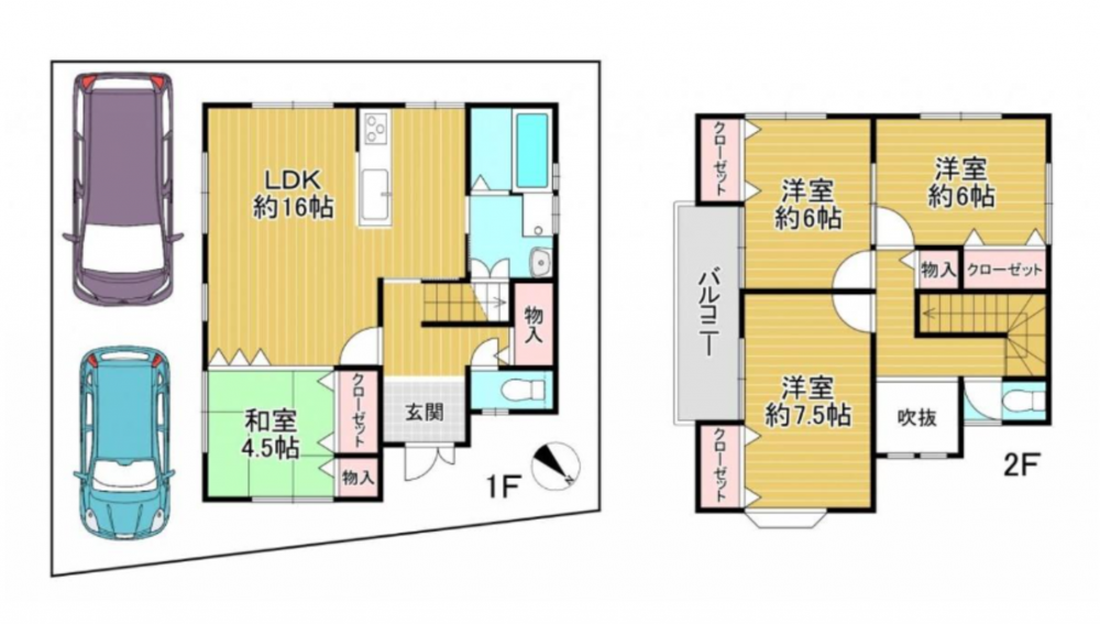 - 追い焚き、駐車場2台分、トイレ2箇所